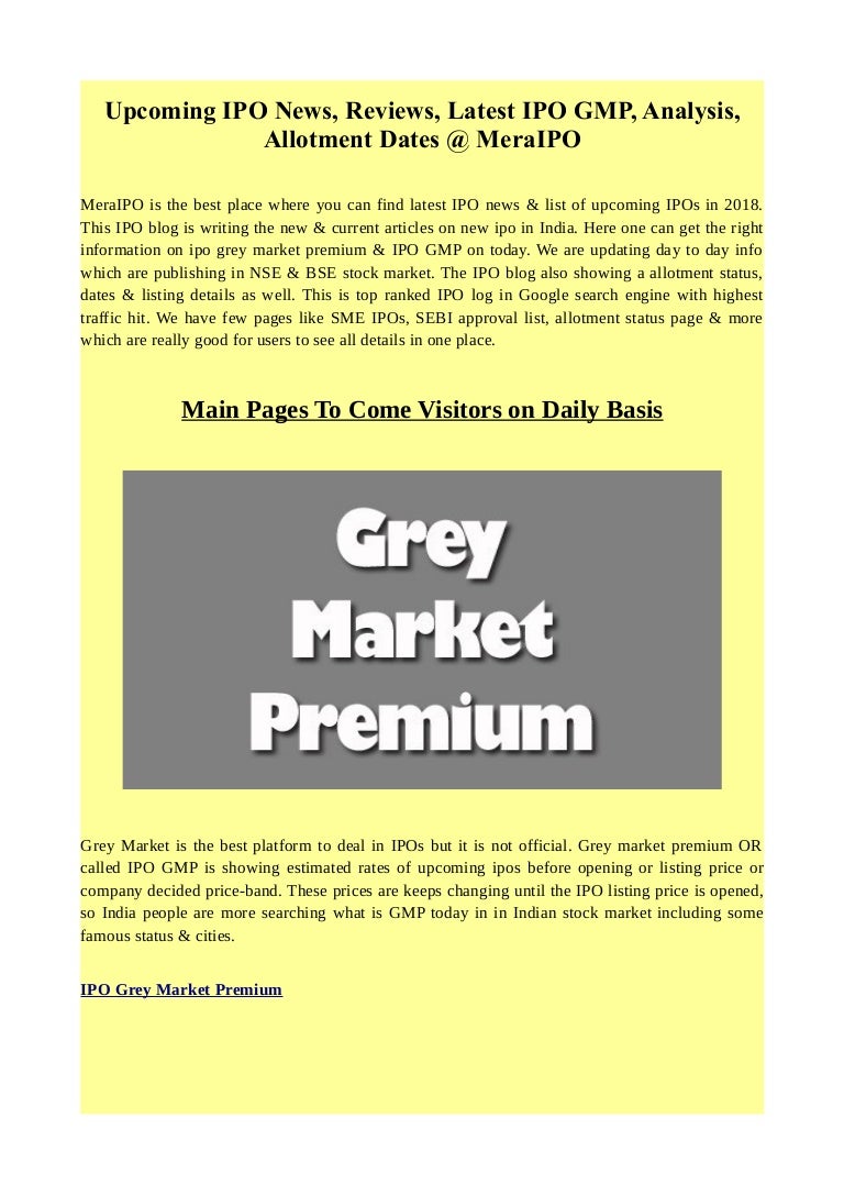 .ipo analysis, ipo subscription news, ipo listing details, ipo allotment status, ipo calendar you are here » home » markets » ipos.